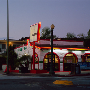 But then I got bored shooting the same building over and over, so I expanded this project to include previously Tastee Freez, Denny's, Pizza Hut, IHOP, etc. I'll photograph the ones that strike my fancy with a variety of medium and large formats. I hope to make it into a book someday, but no promises yet.